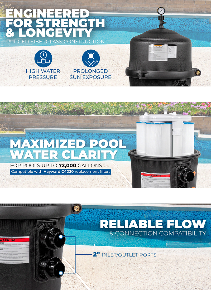 425 sq ft pool cartridge filter (4-piece set) for above-ground, underground swimming pools and spas, 2-inch inlet/outlet connectors