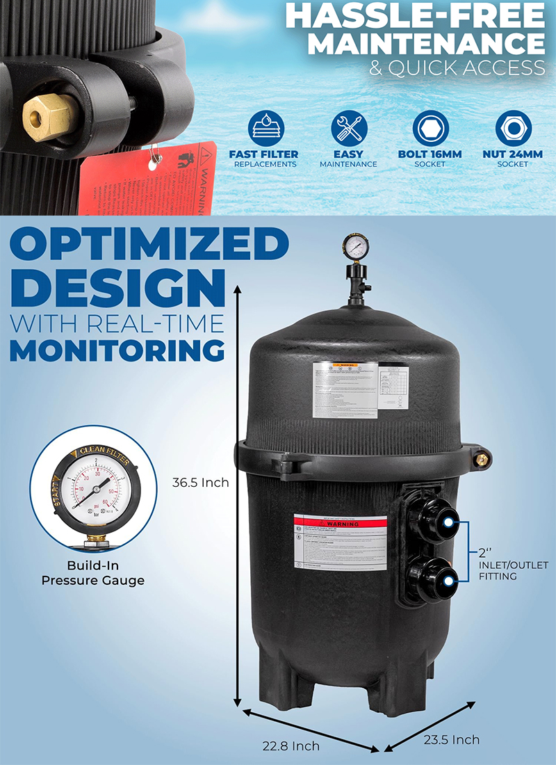 AIBO Cartridge Pool Filtration System, cartridge filters for swimming pools and spas, with diatomaceous earth (DE) cartridges