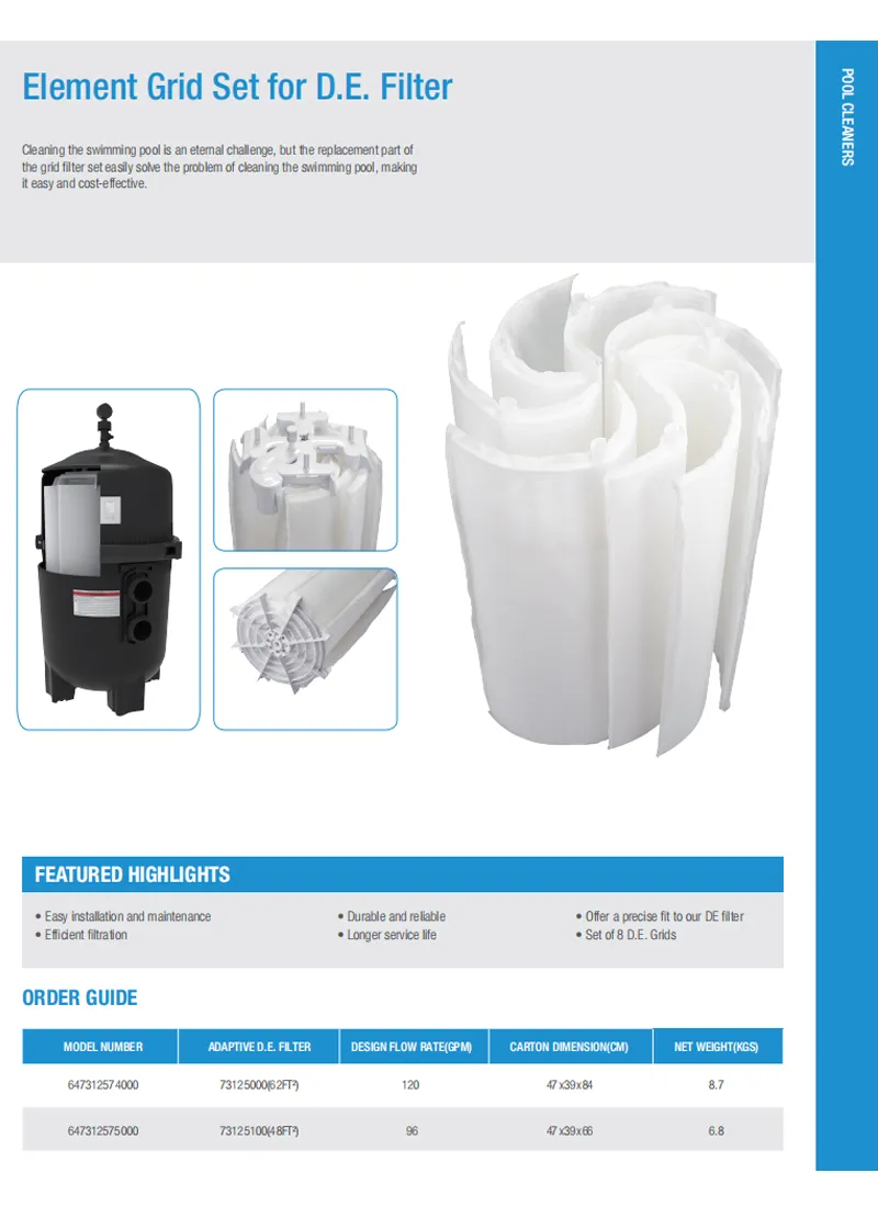 Pool cartridge filters, diatomaceous earth (DE) filters