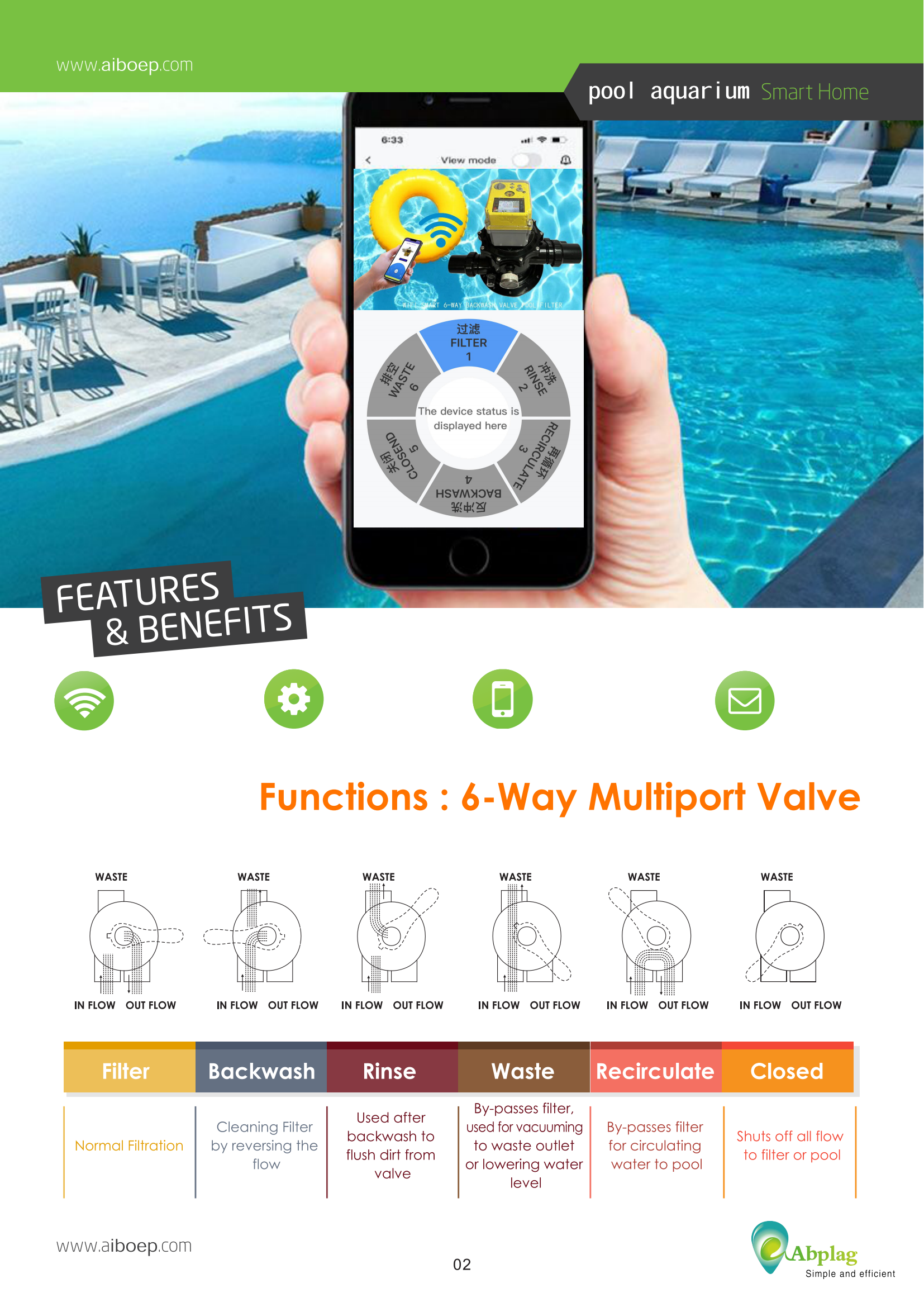 Suitable for sand filter 6 position backwash valve